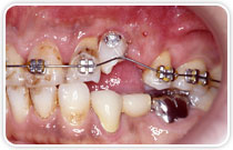 1本1本の歯にブラケット(金属)を接着してワイヤーを通し、小さい力を加えて歯を移動させて行きます。